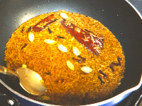 ホールスパイスを油で炒めて、スパイスの風味を油に移します。